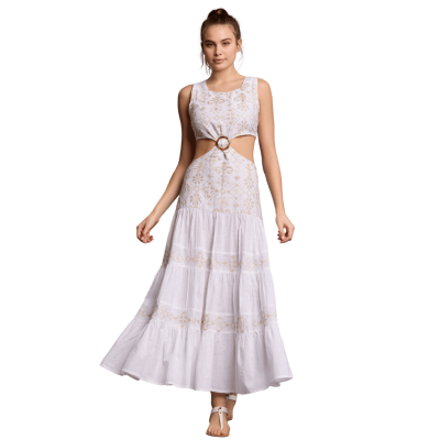 Abito lungo in morbido cotone con decori dorati.