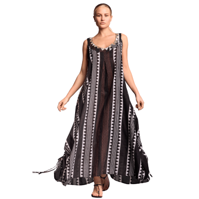 Abito lungo in morbido cotone con fantasia etnica grafica.
