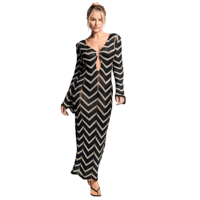 Abito lungo effetto uncinetto traforato a righe nero e oro.