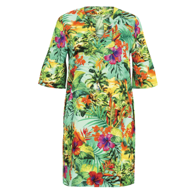 Abito tunica copricostume con manica 3/4 ampia.
