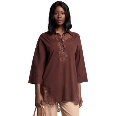 Scollo a V on inserto in pizzo, bottoncini di chiusura fino a metà lunghezza.